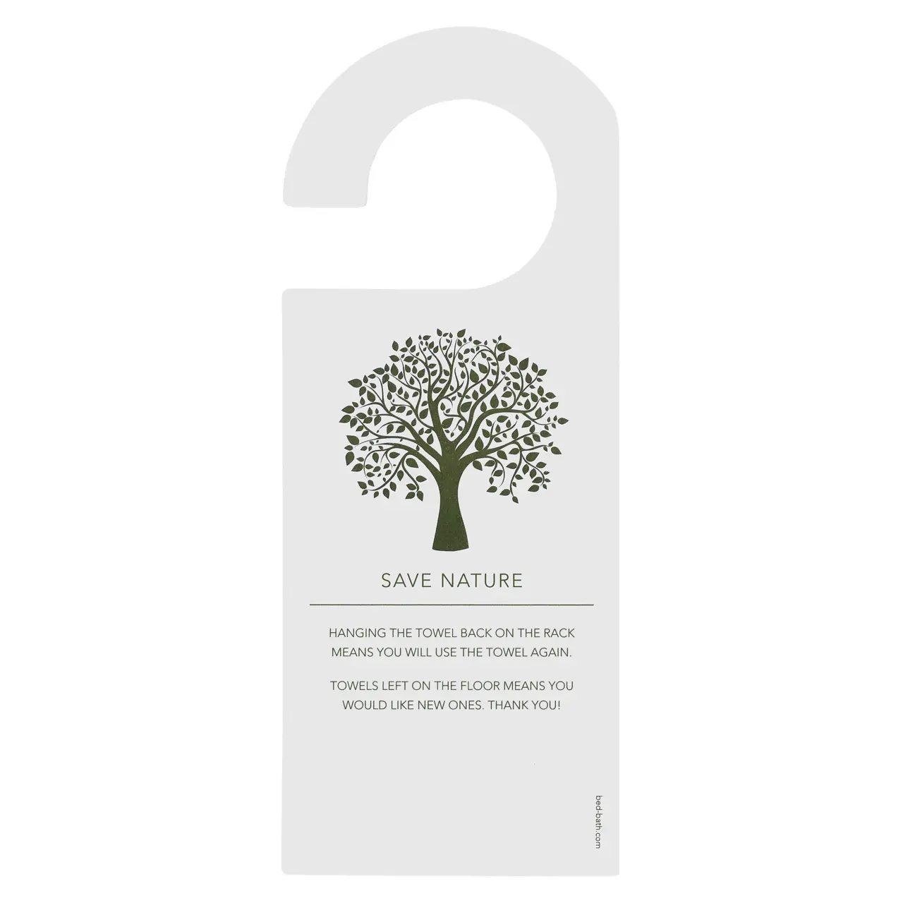 Protect the environment by hanging our Save Nature sign in the bathroom. A durbler sign in thick cardboard 50 pcs/bundle. In English