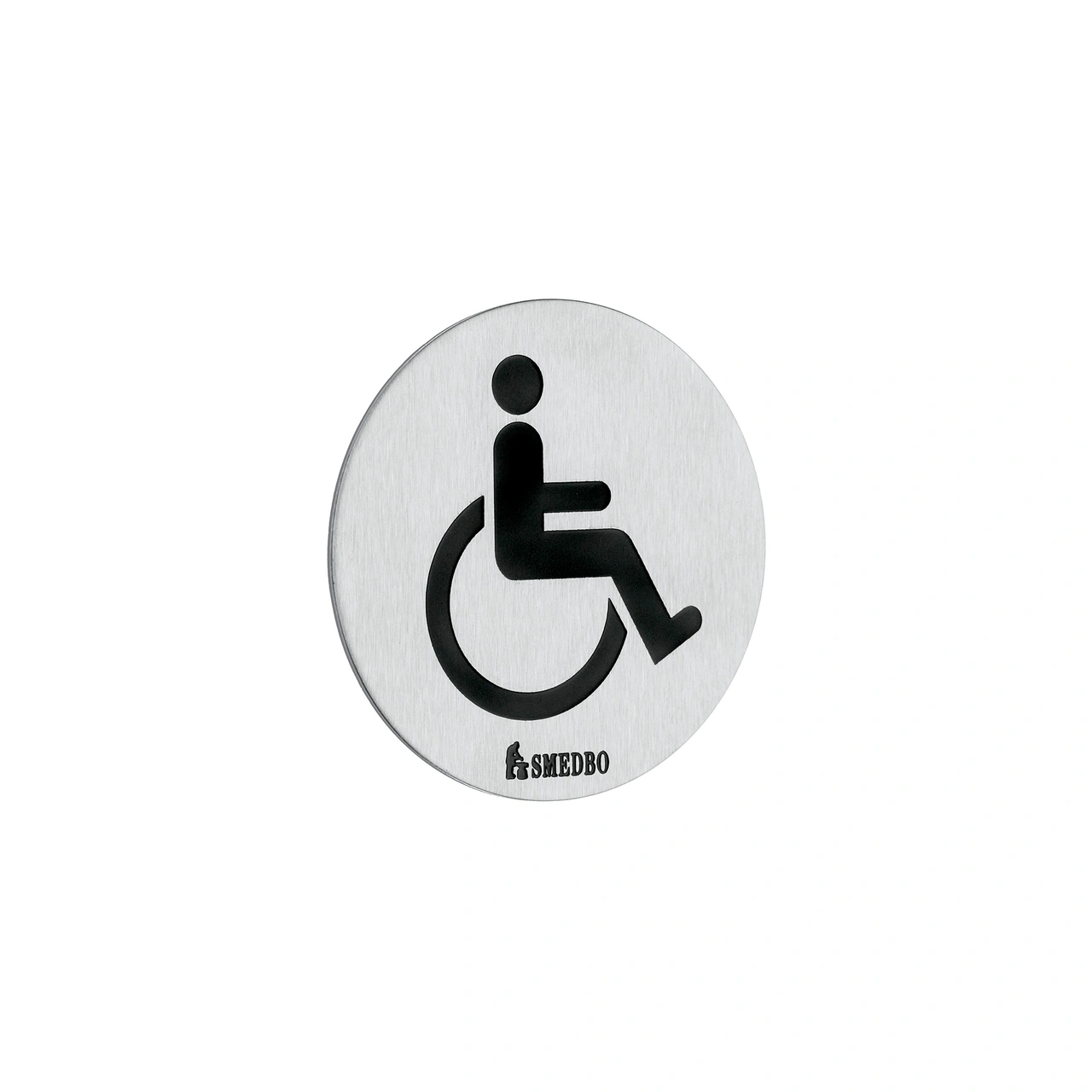 Snygg stilren och självhäftande toalett skylt "Handikapp" från Smedbo i borstat rostfritt stål.